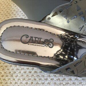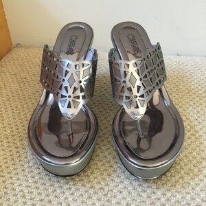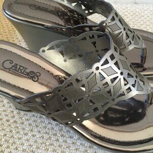 Carlos by Carlos Santana Madison Silver Die-Cut-Out Wedge Thong Sandal Sz7.5 #02