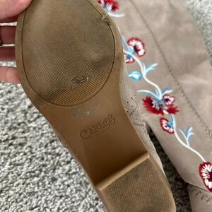 Tags: Carlos by Carlos Santana boots, suede knee high boots, women’s size 7.5 boots, floral embroidered boots, brown suede boots, tall boots women, knee high boots, designer boots women, Carlos Santana footwear, boho boots, western inspired boots, suede tall boots floral, statement boots women