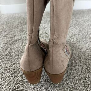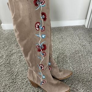 Tan suede knee-high boots with embroidered floral details #boho #western