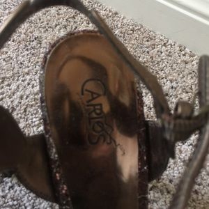 Carlos by Carlos Santana - Vienna peep toe slingbacks heels, only worn once for a wedding and still in excellent condition. Bronze/brown/hints of silver. 5.5 inch heel with 1 inch platform. Size 8M.