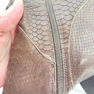 Scuffs on toes and heels, white spot by zipper, as pictured