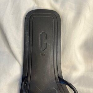 Rubber slides with crossover straps. Made by Carlotha Ray. Lightly worn. Grey/Black. Size 8.