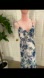 Dress! Breezy chiffon, in a blue and white floral print, falls from adjustable spaghetti straps, into a V-neckline and darted, sleeveless bodice with an angular empire waist.