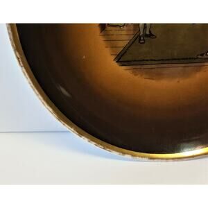 Pre-owned. Very Good Used Condition. No chips, cracks, crazing, cutlery marks, or discoloration. There is a 1/8" scratch just to the right of the illustration. Gold trim is worn most of the way around the edge. See photos.