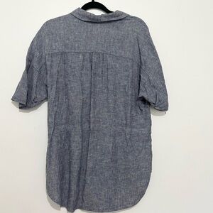 3/4 button up front and split bottom - cuffed sleeves - elastic back-shirt sleeves- lightweight- collared top