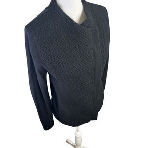Carlson 100% Wool Black Textured Knit Jacket Zip Up Size S