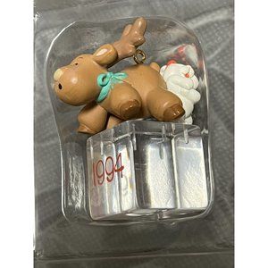 Carlton Cards Ornament 1994 Ice block pals Skating Cake Topper Cupcake Moose vtg