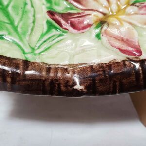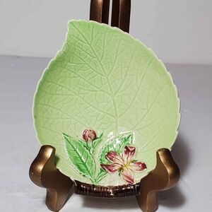 Carlton Ware Small Green Leaf Dish Pink Flower Vintage