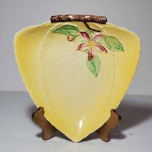 Vintage Carlton Ware candy dish. Yellow with pink flower. Stain by flower (see picture). Crazing due to age. Made in England. 7.25" x 7.25".