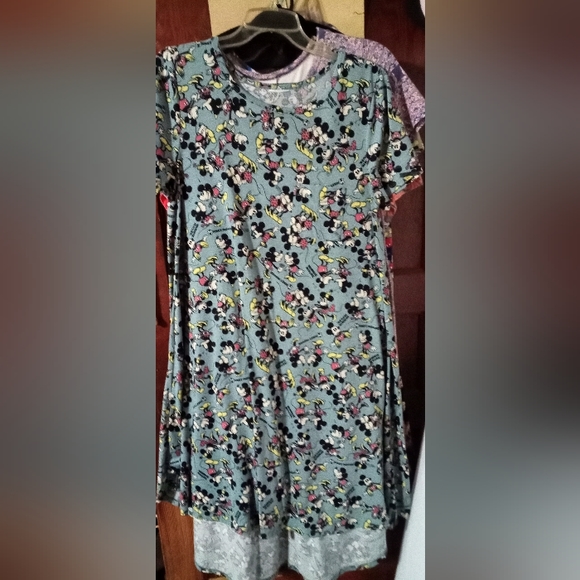 Carly, like New, I hate tags so I cut them out. polyester blend, Mickey and Minnie