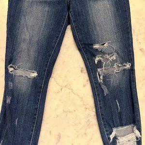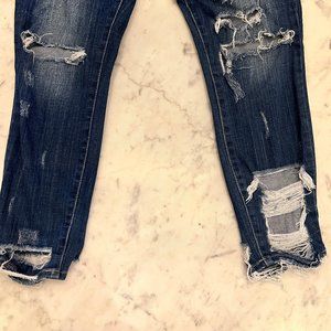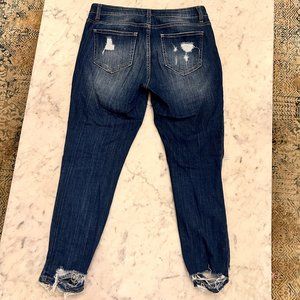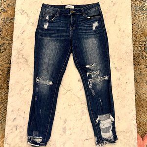 Carly Jean Los Angeles Dark Rinse Distressed Cropped Jeans Size 7 or 29