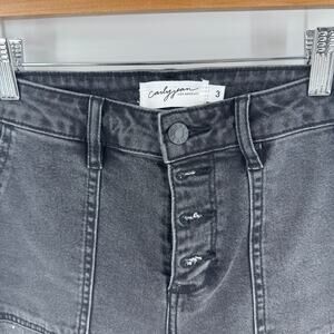 Carly Jean Los Angeles Wide Cropped Black Jeans High Rise Raw Hem Size 3 (27)
