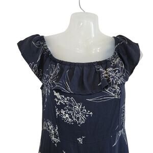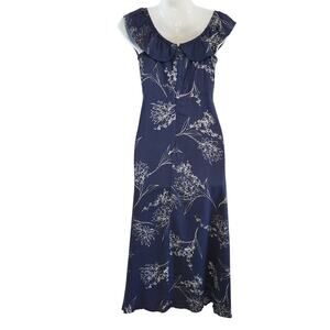 Carly Jean Off The Shoulder Midi Dress Ruffled Floral Navy Blue White Size Small