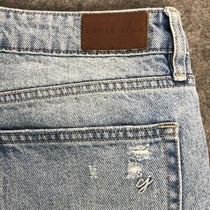 Carly Jean Womens Jeans 13 Blue Straight High Rise Baggy Button Fly Distressed