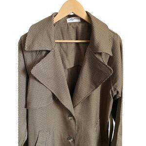 Carly Jean Women's Size S Downing Trench Coat Jacket Taupe Tie Belt Houndstooth
