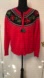 This elegant red cardigan features intricate Poinsettia breaded embroidery, adding a touch of sophistication to your wardrobe. Perfect for staying cozy and stylish.