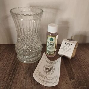 Clear-Crystal cut-Vase-Glass-comes /w Plastic oil container/w Wick & bottle of oil -Instruction included-Beautiful-can also be used as a Vase-New condition-wore Box-offers welcome