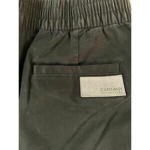 Elasticized waistband and leg cuffs. Zip and snap front.