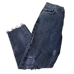 Carmar Black Distressed Straight Leg Jeans Sz 28 Torn Raw Hem 26" Inseam Ankle