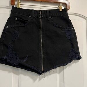 Carmar Black Mini Destroyed Jean Skirt with Front Up and Down Zipper