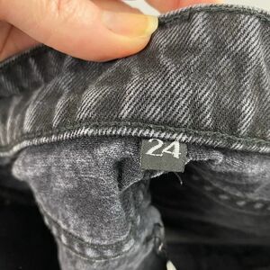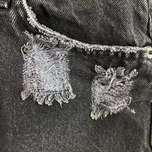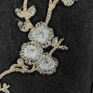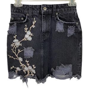 LF Carmar Black High Rise Slim Distressed Fit Floral Embroidered Denim Skirt Size 24