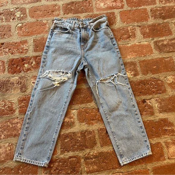 Carmar Blue Straight Leg Distressed Ripped Shredded size 25 Jeans denim