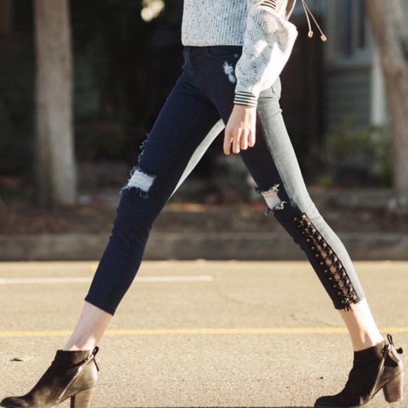 Carmar Denim brand dark blue cropped jeans with lace up calves in size 27