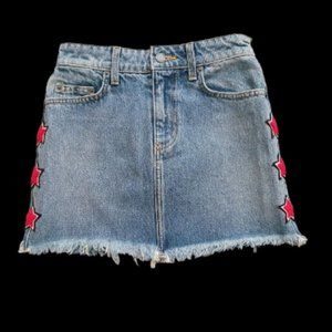 Carmar Denim Mini Skirt Size 25 -W24" Los Angeles Medium Wash Jean Raw Hem Blue