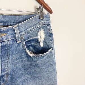 High rise, five pockets style, factory distressed