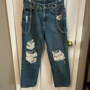 Carmar Denim Women’s (25) High Waist Distressed Chain Straight Leg Jeans