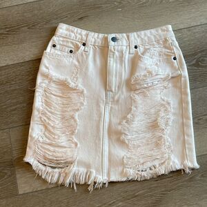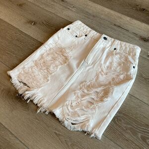 Carmar Distressed Denim Mini Skirt Cream-Light Pink Size 26