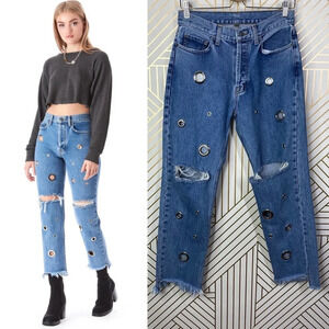 Carmar Emelia Gia Non-Stretch Distressed Grommet Jeans in Blue Size US 28