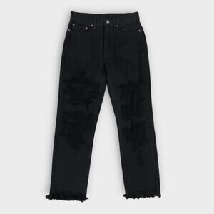 Carmar Emelia High Rise Straight Leg Raw Hem Distressed Black Jeans Size 27