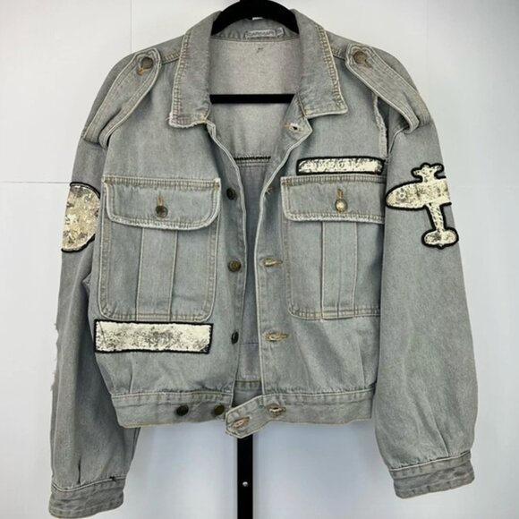 Carmar LF Denim Jacket with pilot art. Size medium. New with tags.