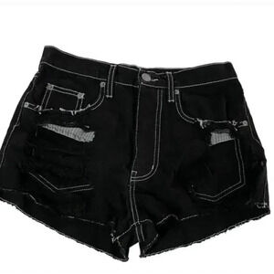 Carmar Shorts Womens 25 Black High Rise Distressed Denim Cutoff Made USA 0115228