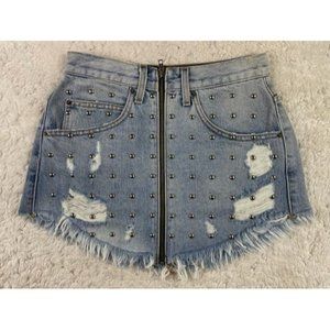 Carmar Size 27 Womens Skirt Cotton Bling Raw Hem Mini Distress Zip Front
