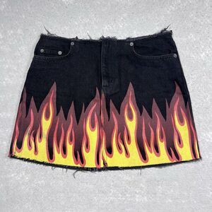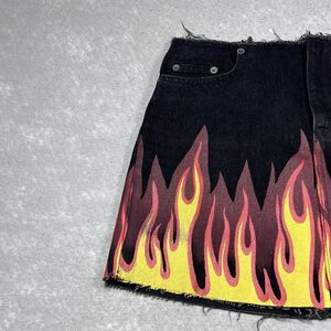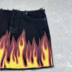 Up for sale: Carmar Skirt Womens Size 27 Black Denim Flame Skirt Pockets Length 14 VTG Y2K