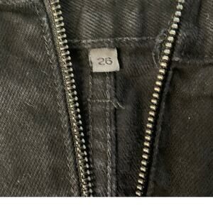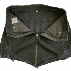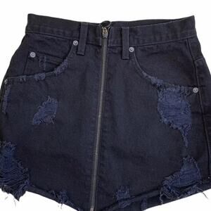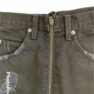 Carmar Women's Size 26 Distressed Mini Skirt Black Denim Full Zip Front Pockets