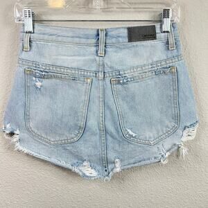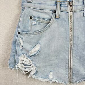 Carmar Zip Front Denim Mini Skirt Women's 27 Ripped Light Wash Cotton Jean