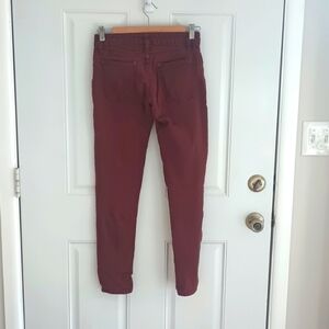 Carmar burgundy denim jeans size 27. Style # D04i3142. Please note that this item is in fair used condition so there are some imperfections such as pilling, loose stitching etc. Please see the photos.