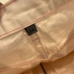 Size 24. Light pink skirt. No stains. Factory distressing.