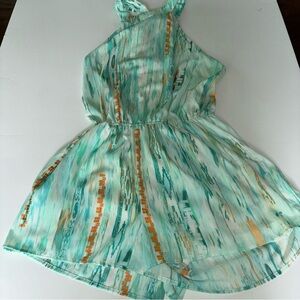 Halter tie at neck, open back romper with elastic waist, 2 side pockets