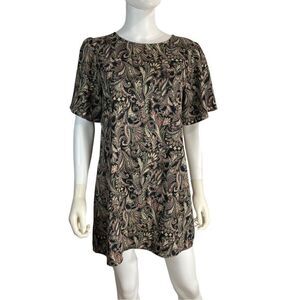 Carmela Women’s Medium Short Sleeve T-Shirt Mini Floral Paisley Dress Back Zip