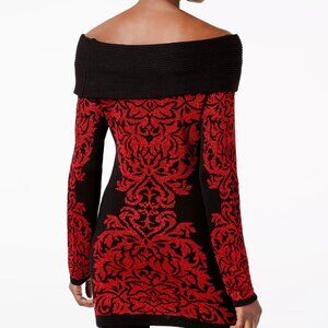Carmen Carmen Marc Valvo Off The Shoulder Sweater Dress Red Black Sz XL Damask
