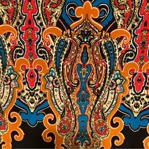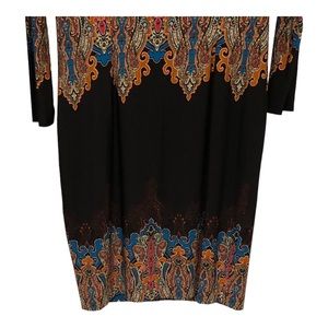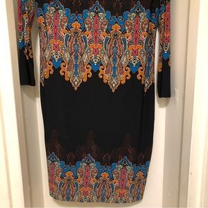 Women's Size M Carmen Carmen Marc Valvo Crew Neck 3/4 Sleeve Black/ Multi Color Block Sheath Midi Dress. Fully lined. Dry clean only.