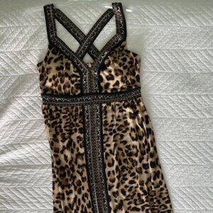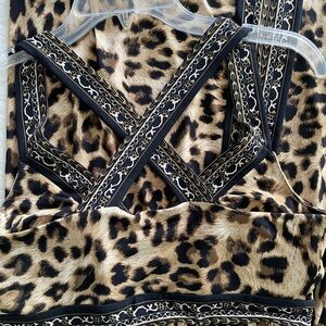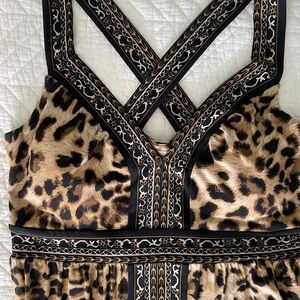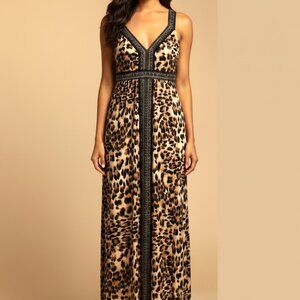 Carmen Leopard Print Criss-Cross Strap Maxi Dress with Embellished Trim