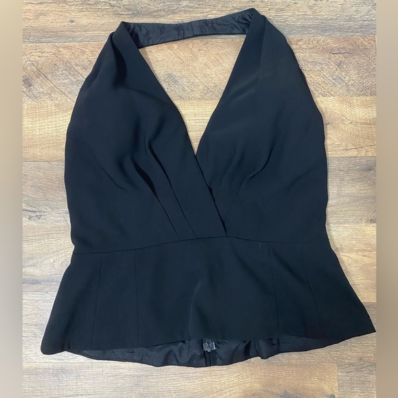 Elegant black halter top with a deep V-neckline. Perfect for a night out.