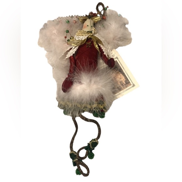 Carmen Manago Large Red Christmas Angel Soft Sculpt Feathers Ornaments 14” Box