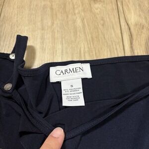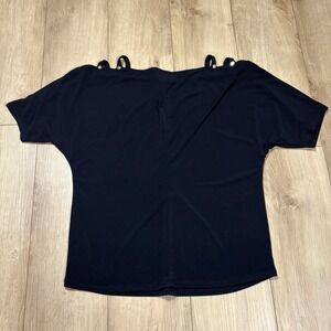 Carmen Marc Valve Navy Blue Cold Shoulder Satin Soft Blouse Business Work Small