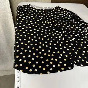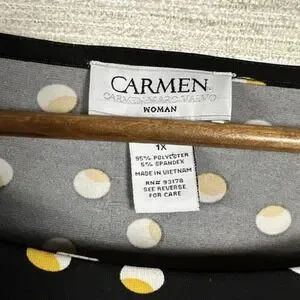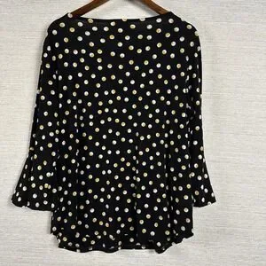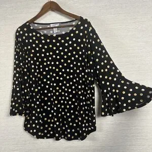 Carmen Marc Valvo 1X Polka Dot Blouse Bell Sleeve Top Black Gold Plus Size Work Career lightweight Flowy Relaxed